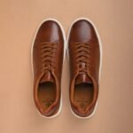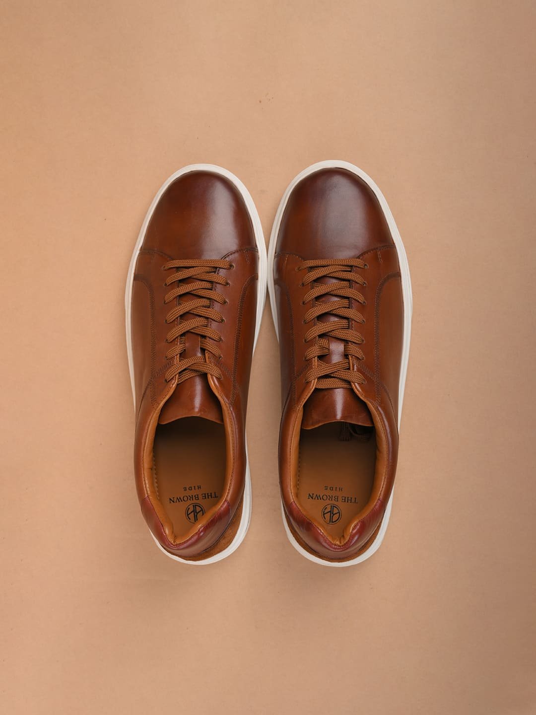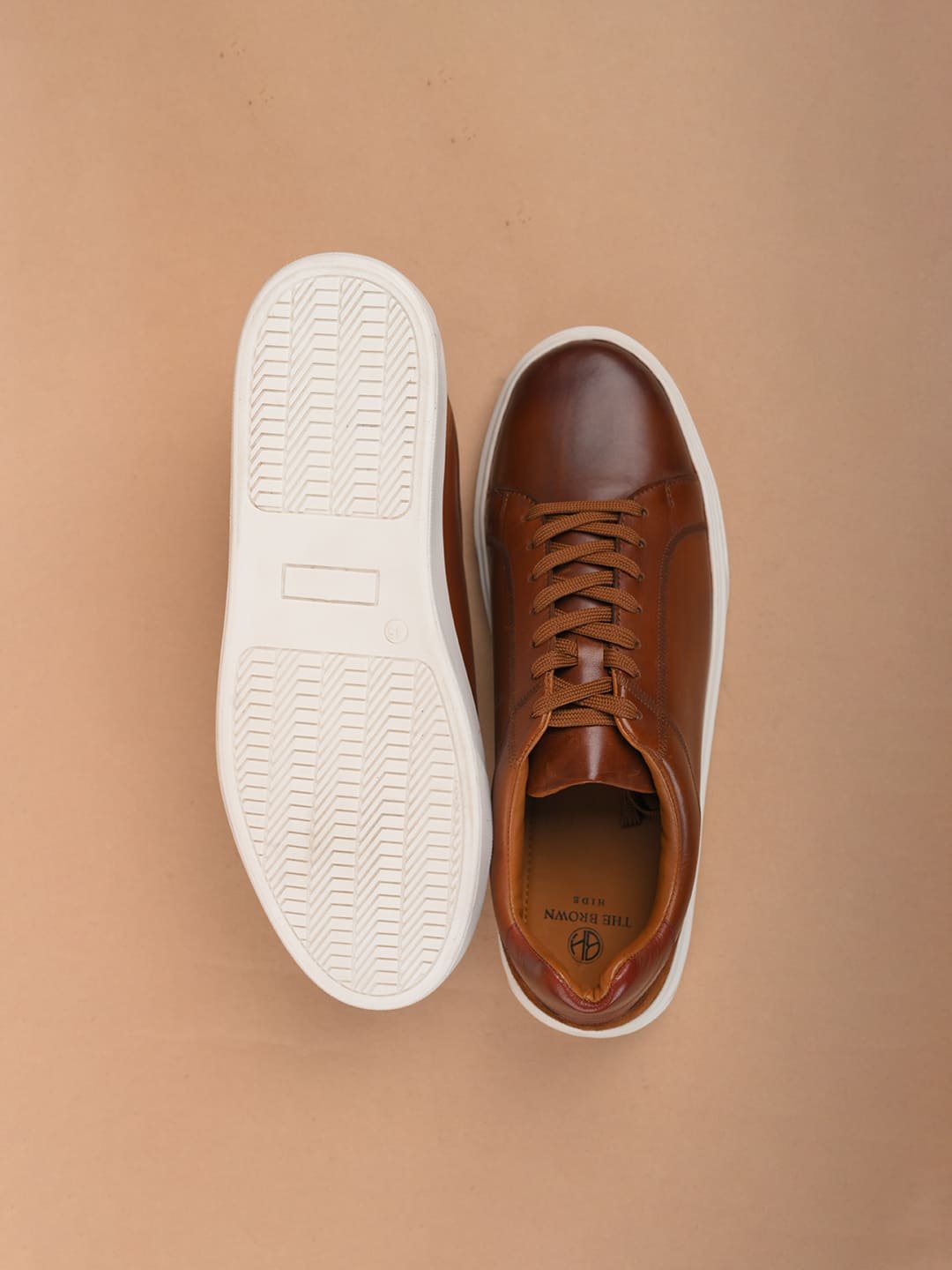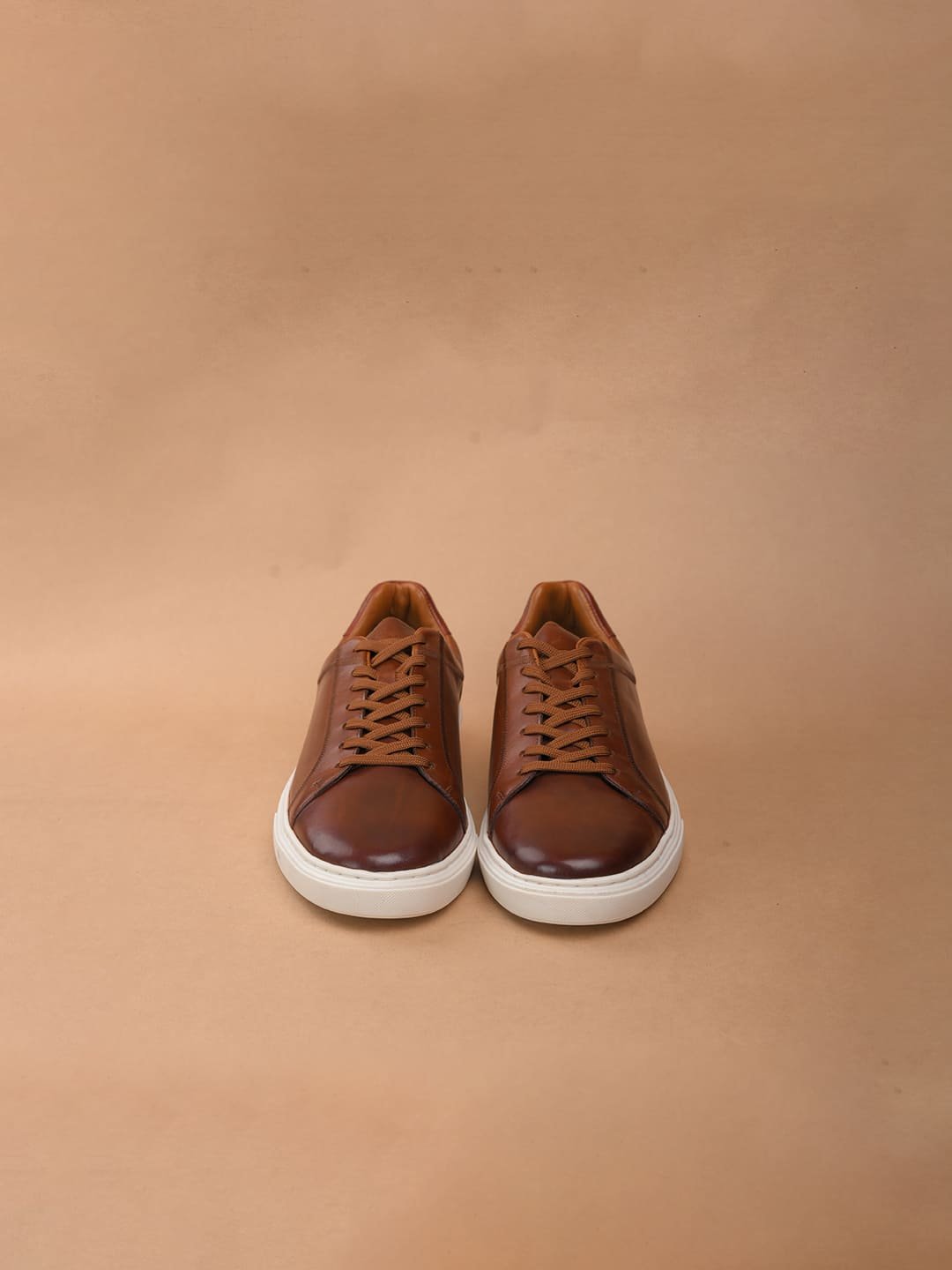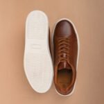 Step into style with Duka, tan leather sneakers from The Brown Hide. Made with top-quality full-grain crust, these sneakers feature a sleek two-tone finish and a chic brown suede detail at the back. The classic white cup sole and matching white laces add a timeless touch.