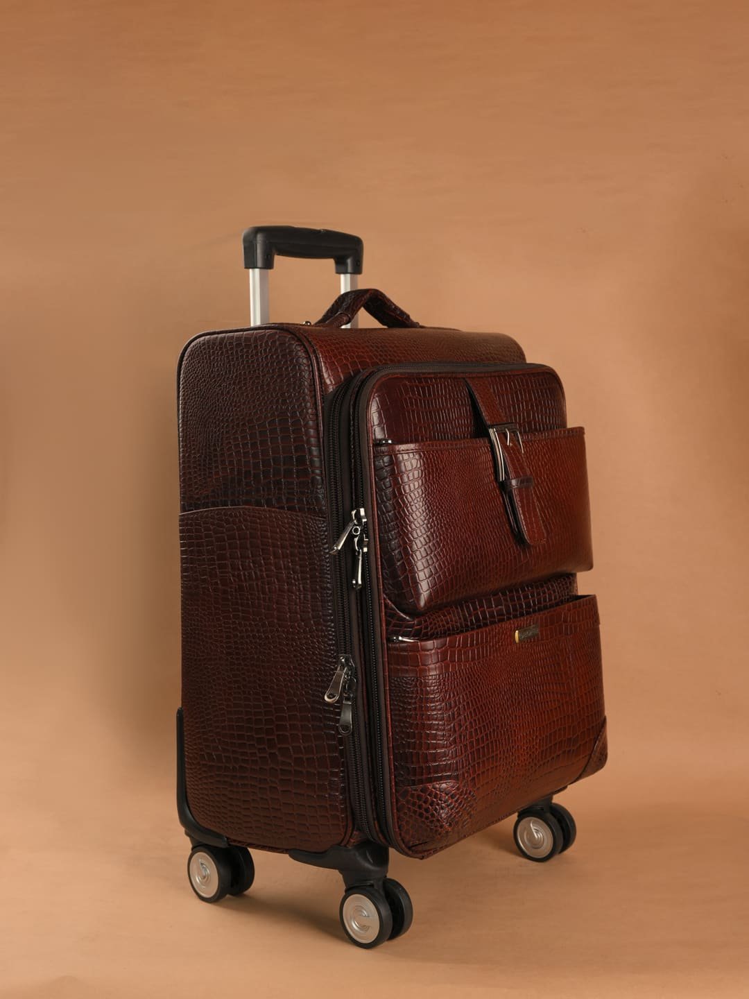 Make every journey unforgettable with the Majestic Brown Croco Leather Cabin Trolley by The Brown Hide, a premium travel companion crafted for those who appreciate distinction, elegance, and unmatched craftsmanship. Wrapped in a rich brown crocodile-texture leather, this trolley showcases a bold, high-end aesthetic that instantly elevates your travel style.