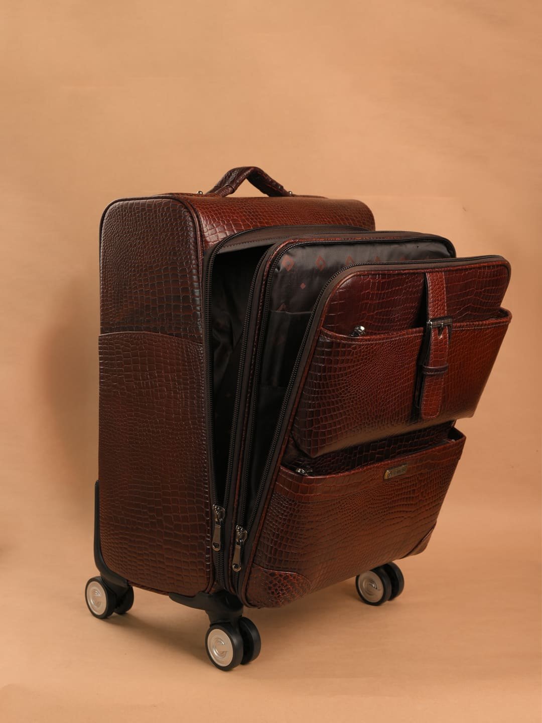 The Brown Hide – Majestic Brown Croco Leather Cabin Trolley