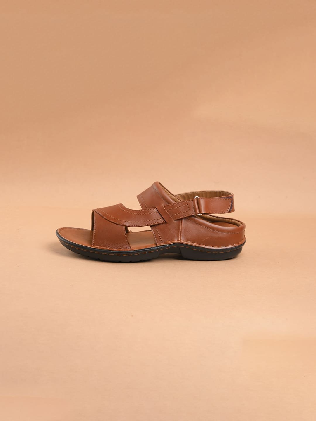 Crafted from premium soft leather, these tan sandals feature a durable PU sole in Lance Black for excellent traction. The rubberized foam insole provides added comfort, making them ideal for casual outings and outdoor