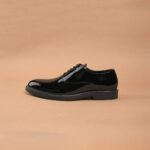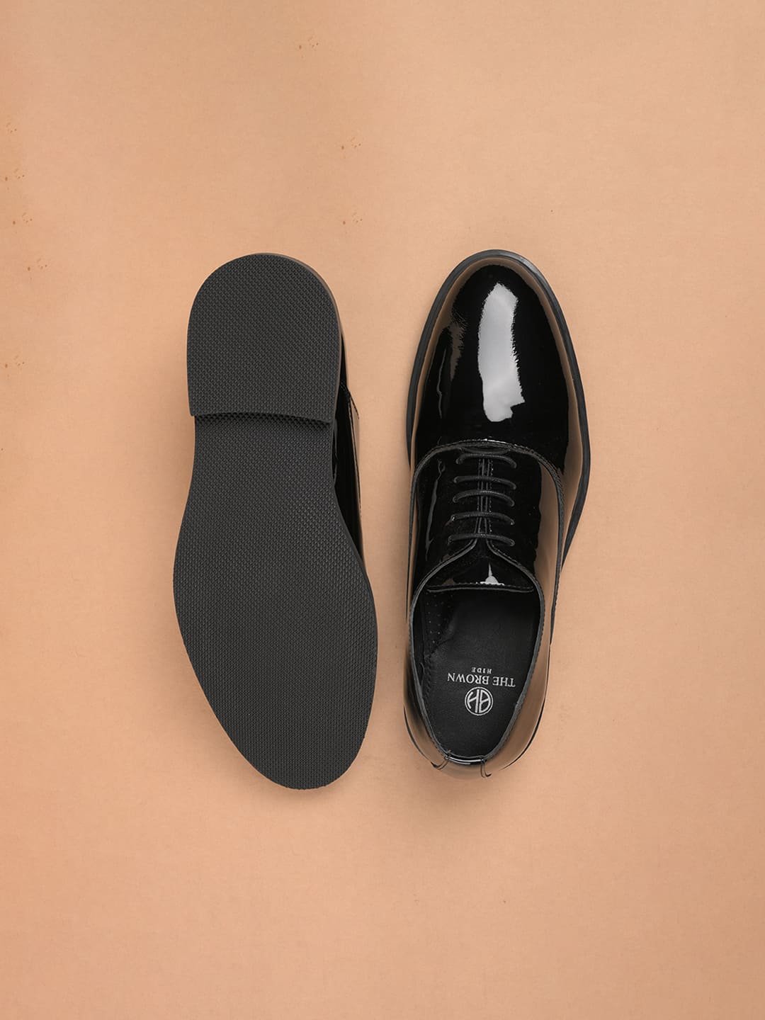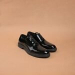 The Brown Hide Eleganza Italiana Patent Crust Leather Lace-Up, a masterpiece for the modern gentleman who appreciates true luxury and impeccable craftsmanship. Designed with a stunning blend of hand-finished crust leather and a flawless patent gloss, this shoe captures the essence of Italian elegance in every detail.