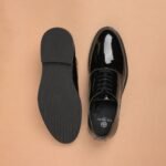 Each pair is crafted through an artisanal patina process, where layers of color are meticulously built to create a rich, deep tone beneath the patent shine—resulting in a striking finish that exudes class and distinction. The sleek lace-up silhouette, refined contours, and polished detailing make it the perfect choice for black-tie events, evening occasions, or any setting where you want to make a statement of effortless sophistication.